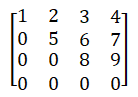 b) El primer elemento no nulo de cada fila (excepto la primera) debe estar más a la derecha que el de la fila anterior.